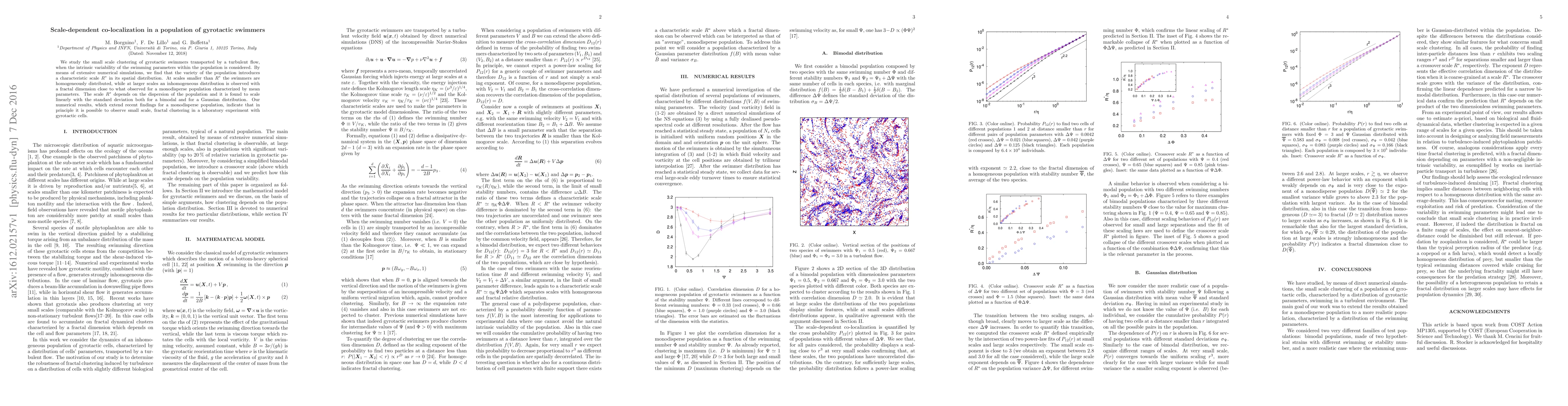This paper investigates the spatial distribution of gyrotactic swimmers in turbulent flow, revealing a characteristic scale $R^*$ where small-scale clustering occurs. At scales smaller than $R^*$, swimmers are uniformly distributed, while larger scales show fractal-like inhomogeneous clustering, dependent on the population's intrinsic variability.