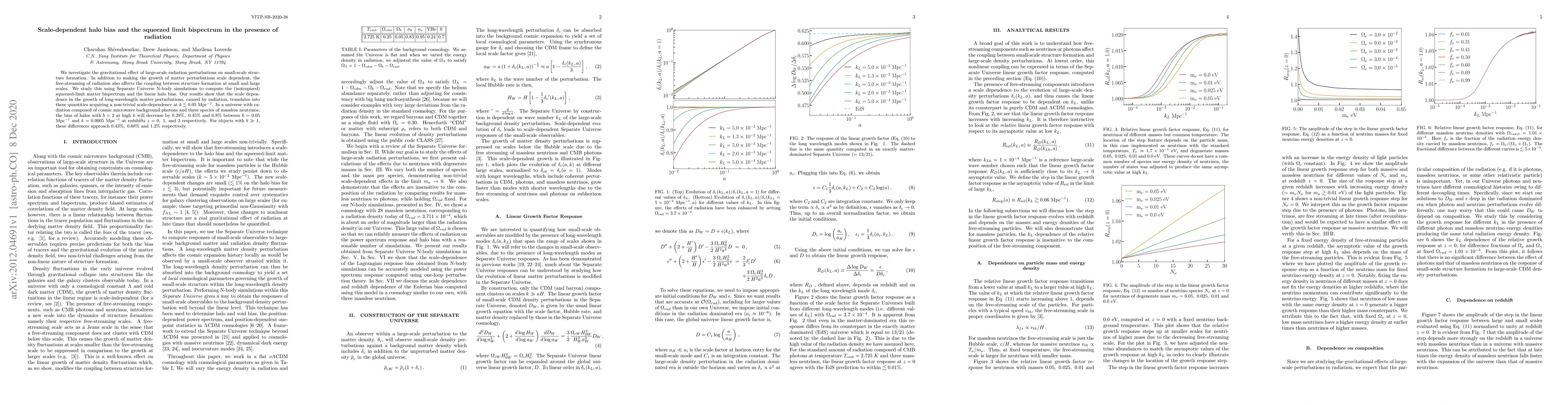 We investigate the gravitational effect of large-scale radiation perturbations on small-scale structure formation. In addition to making the growth of matter perturbations scale dependent, the free-streaming of radiation also affects the coupling between structure formation at small and large scales. We study this using Separate Universe N-body simulations to compute the (isotropized) squeezed-limit matter bispectrum and the linear halo bias. Our results show that the scale dependence in the growth of long-wavelength matter perturbations, caused by radiation, translates into these quantities acquiring a non-trivial scale-dependence at $k\lesssim 0.05$ Mpc$^{-1}$. In a universe with radiation composed of cosmic microwave background photons and three species of massless neutrinos, the bias of halos with $b = 2$ at high $k$ will decrease by $0.29\%,\ 0.45\%$ and $0.8\%$ between $k = 0.05$ Mpc$^{-1}$ and $k = 0.0005$ Mpc$^{-1}$ at redshifts $z=0,\ 1$, and $3$ respectively. For objects with $b\gg1$, these differences approach $0.43\%,\ 0.68\%$ and $1.2\%$ respectively.