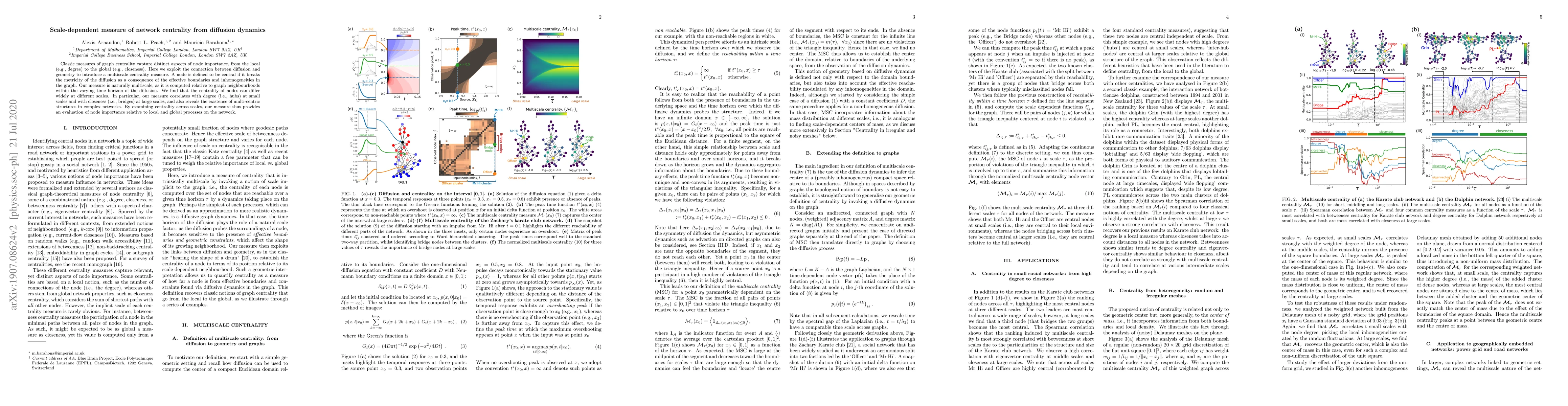 A new measure of network centrality is introduced that considers scale-dependent effects, correlating with local degree at small scales and global closeness at large scales, revealing the existence of multi-centric structures in complex networks.