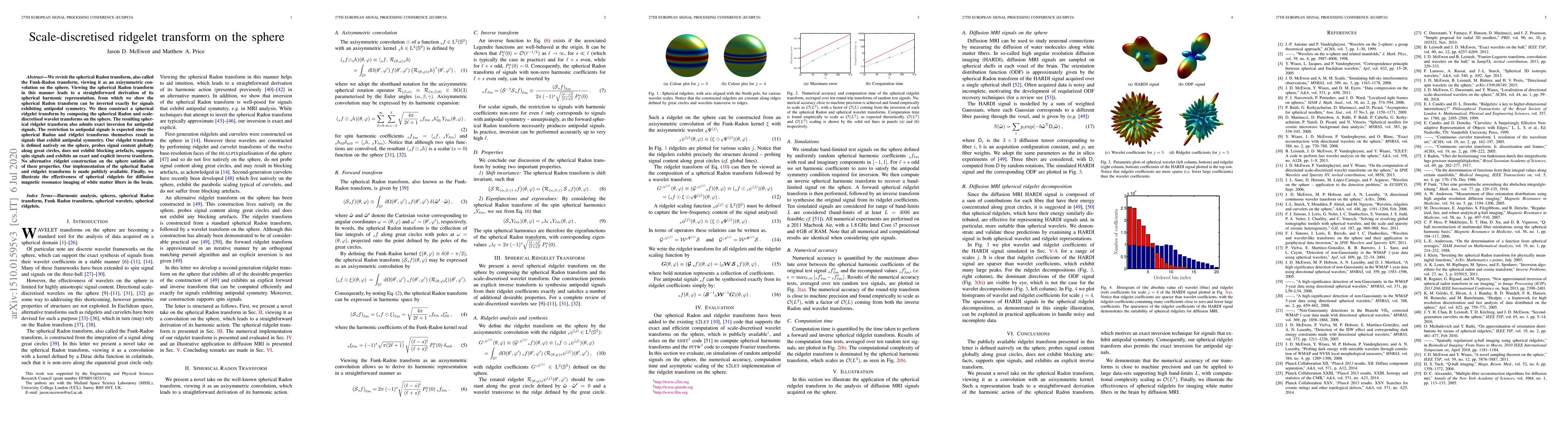 This paper develops a scale-discretised ridgelet transform on the sphere, deriving it from the spherical Radon transform and scale-discretised wavelet transforms. The proposed transform supports exact inversion and is particularly effective for antipodal signals, with applications demonstrated in diffusion magnetic resonance imaging.
