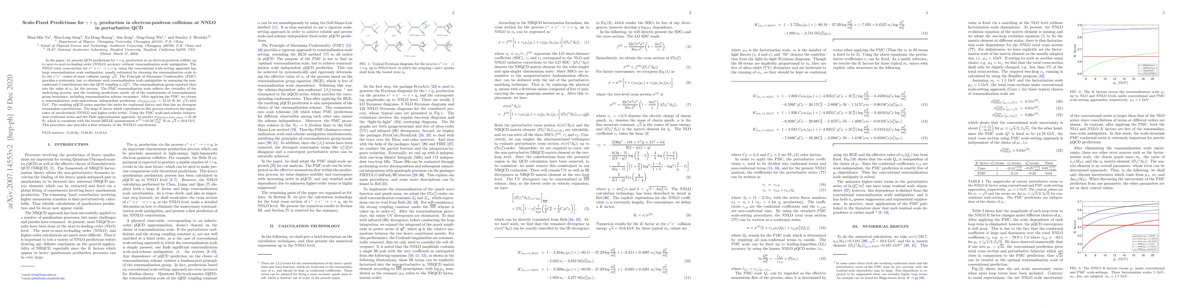 Researchers present QCD predictions for η + ςρ production in electron-positron collisions at NNLO accuracy without renormalization scale ambiguities, achieving a scale-and-scheme independent prediction of 41.18 fb.