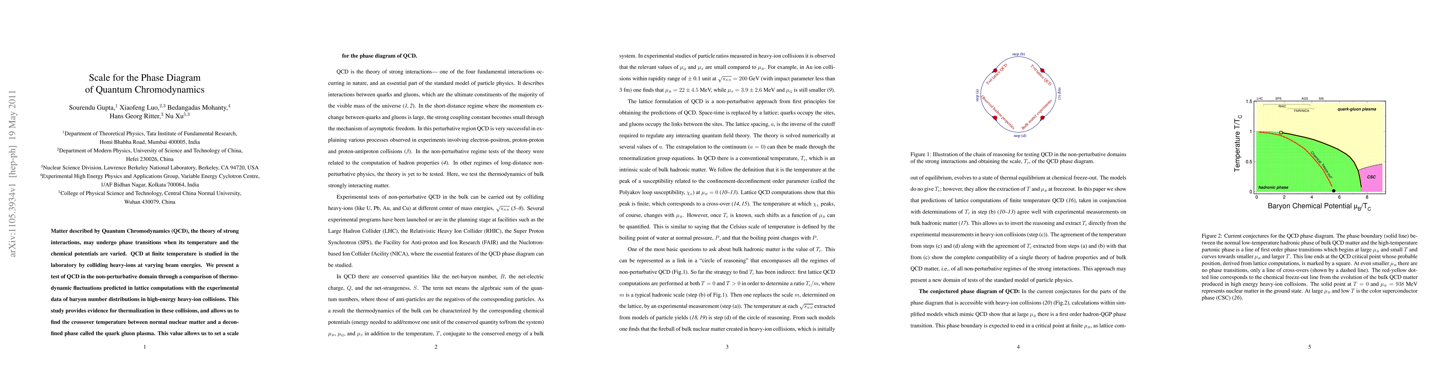 Matter described by Quantum Chromodynamics (QCD), the theory of strong interactions, may undergo phase transitions when its temperature and the chemical potentials are varied. QCD at finite temperature is studied in the laboratory by colliding heavy-ions at varying beam energies. We present a test of QCD in the non-perturbative domain through a comparison of thermodynamic fluctuations predicted in lattice computations with the experimental data of baryon number distributions in high-energy heavy-ion collisions. This study provides evidence for thermalization in these collisions, and allows us to find the crossover temperature between normal nuclear matter and a deconfined phase called the quark gluon plasma. This value allows us to set a scale for the phase diagram of QCD.