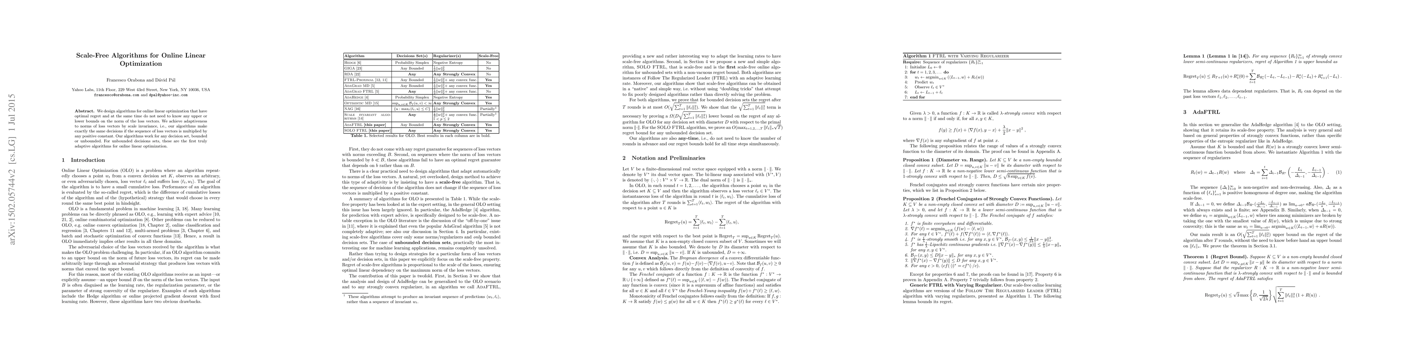 This paper introduces scale-free algorithms for online linear optimization that achieve optimal regret without requiring knowledge of loss vector bounds, leveraging scale invariance for adaptiveness to loss vector norms. These algorithms are the first adaptive solutions for unbounded decision sets.