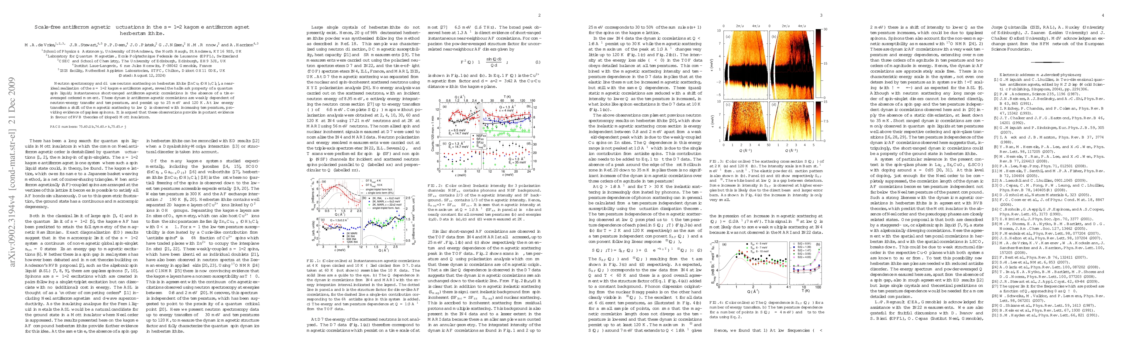 Herbertsmithite exhibits scale-free antiferromagnetic fluctuations with weak energy transfer dependence and temperature stability, supporting RVB theories of Mott insulators. These findings provide evidence for gapless spinons.