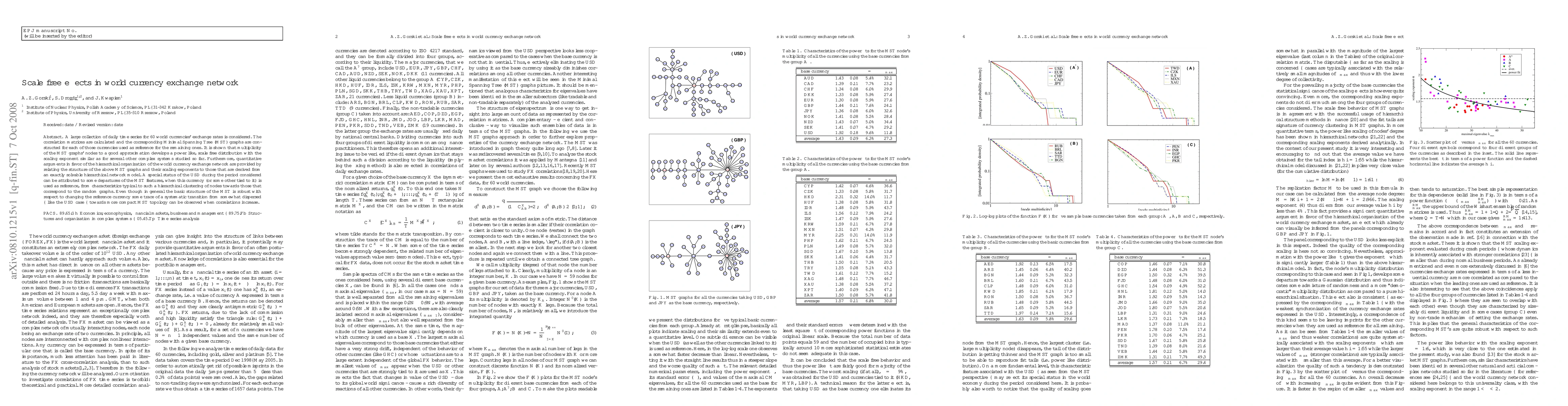 This paper investigates the scale-free effects in the world currency exchange network by analyzing the correlation matrices and Minimal Spanning Tree (MST) graphs of 60 currencies. It finds a power-law distribution in the MST graph nodes, indicating a hierarchical organization similar to other complex systems, with a notable deviation for the USD that suggests a transition from dispersed to more compact network topology as correlations increase.