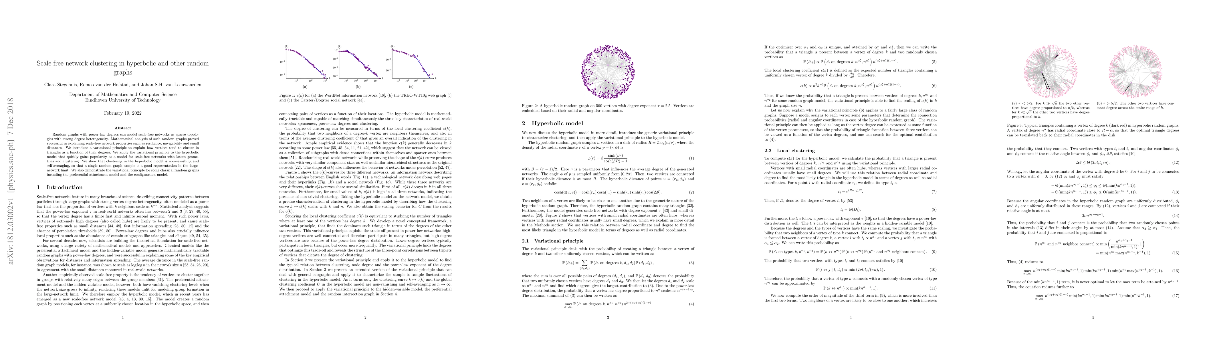 Random graphs with power-law degrees can model scale-free networks as sparse topologies with strong degree heterogeneity. Mathematical analysis of such random graphs proved successful in explaining scale-free network properties such as resilience, navigability and small distances. We introduce a variational principle to explain how vertices tend to cluster in triangles as a function of their degrees. We apply the variational principle to the hyperbolic model that quickly gains popularity as a model for scale-free networks with latent geometries and clustering. We show that clustering in the hyperbolic model is non-vanishing and self-averaging, so that a single random graph sample is a good representation in the large-network limit. We also demonstrate the variational principle for some classical random graphs including the preferential attachment model and the configuration model.
