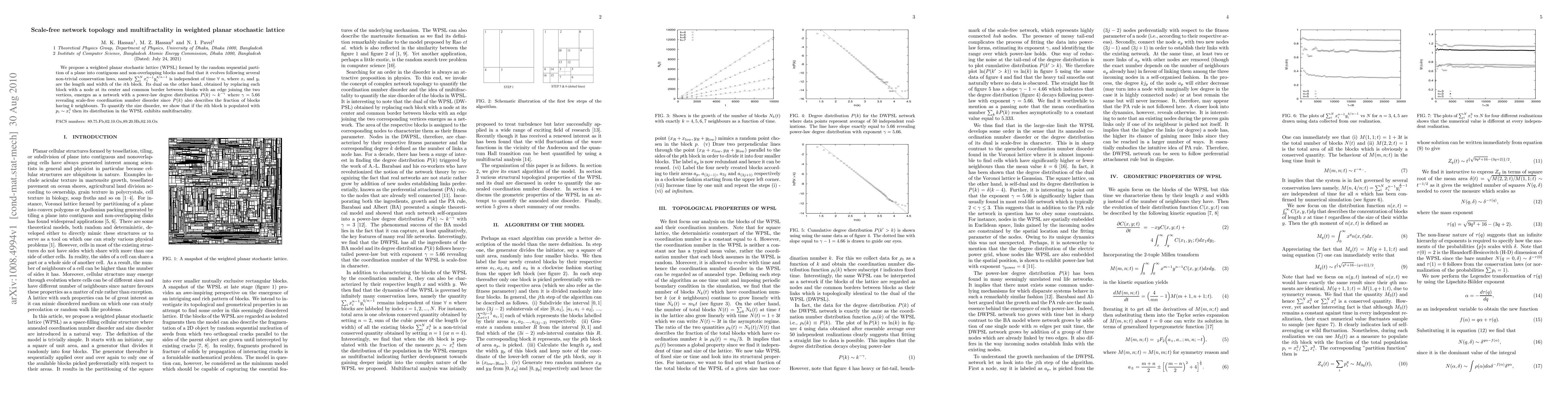 This paper proposes a weighted planar stochastic lattice that evolves according to conservation laws, forming a scale-free network with a power-law degree distribution. The size disorder in the lattice is shown to exhibit multifractality.