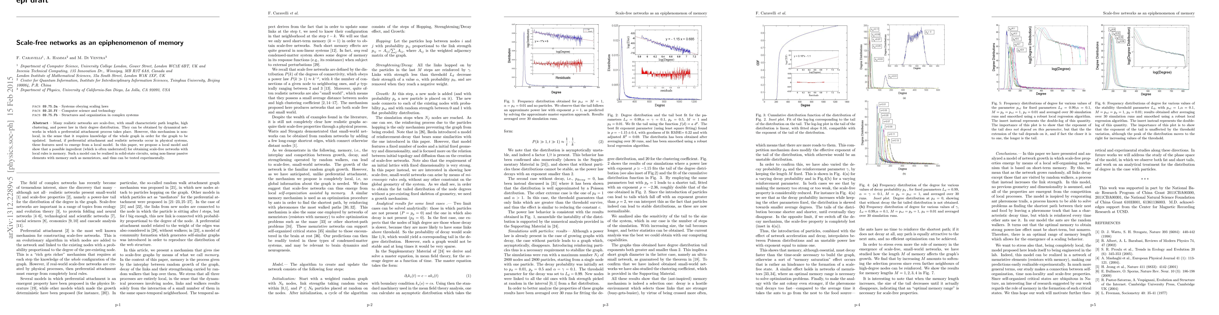 Many realistic networks are scale-free, with small characteristic path lengths, high clustering, and power law in their degree distribution. They can be obtained by dynamical networks in which a preferential attachment process takes place. However, this mechanism is non-local, in the sense that it requires knowledge of the whole graph in order for the graph to be updated. Instead, if preferential attachment and realistic networks occur in physical systems, these features need to emerge from a local model. In this paper, we propose a local model and show that a possible ingredient (which is often underrated) for obtaining scale-free networks with local rules is memory. Such a model can be realised in solid-state circuits, using non-linear passive elements with memory such as memristors, and thus can be tested experimentally.