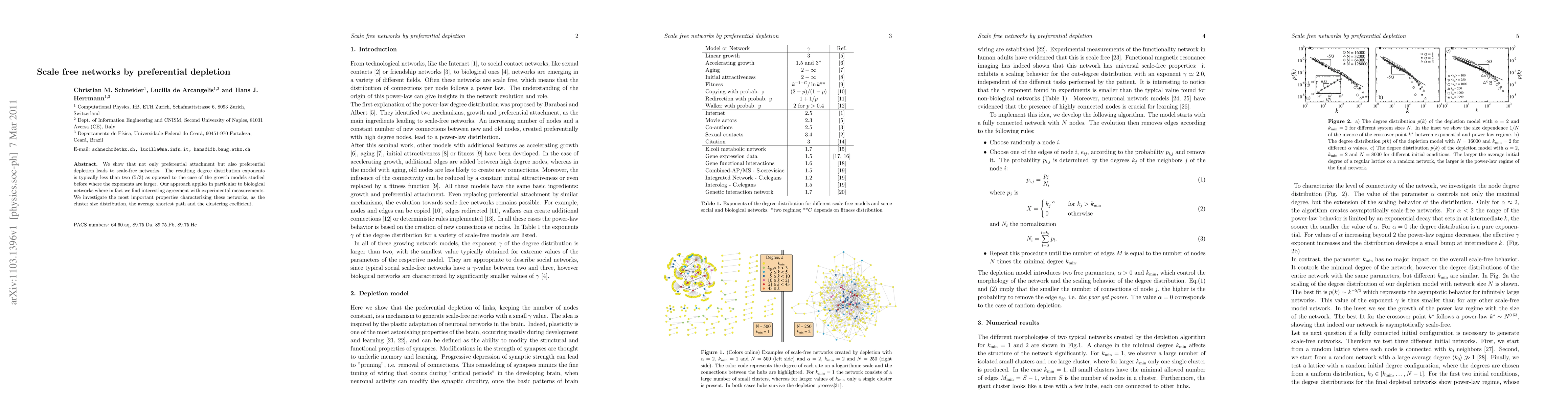 We show that not only preferential attachment but also preferential depletion leads to scale-free networks. The resulting degree distribution exponents is typically less than two (5/3) as opposed to the case of the growth models studied before where the exponents are larger. Our approach applies in particular to biological networks where in fact we find interesting agreement with experimental measurements. We investigate the most important properties characterizing these networks, as the cluster size distribution, the average shortest path and the clustering coefficient.