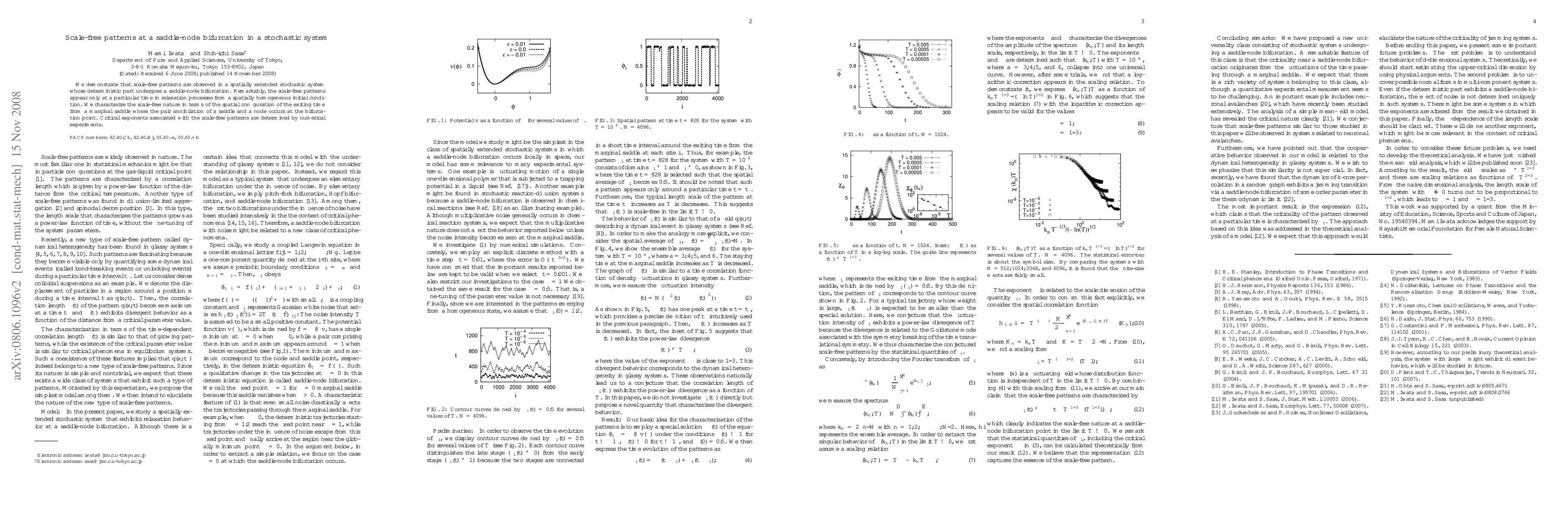This paper investigates a spatially extended stochastic system undergoing a saddle-node bifurcation, revealing scale-free patterns at a specific time during relaxation from a homogeneous initial state. The study characterizes the scale-free nature through the spatial configuration and determines critical exponents via numerical experiments.