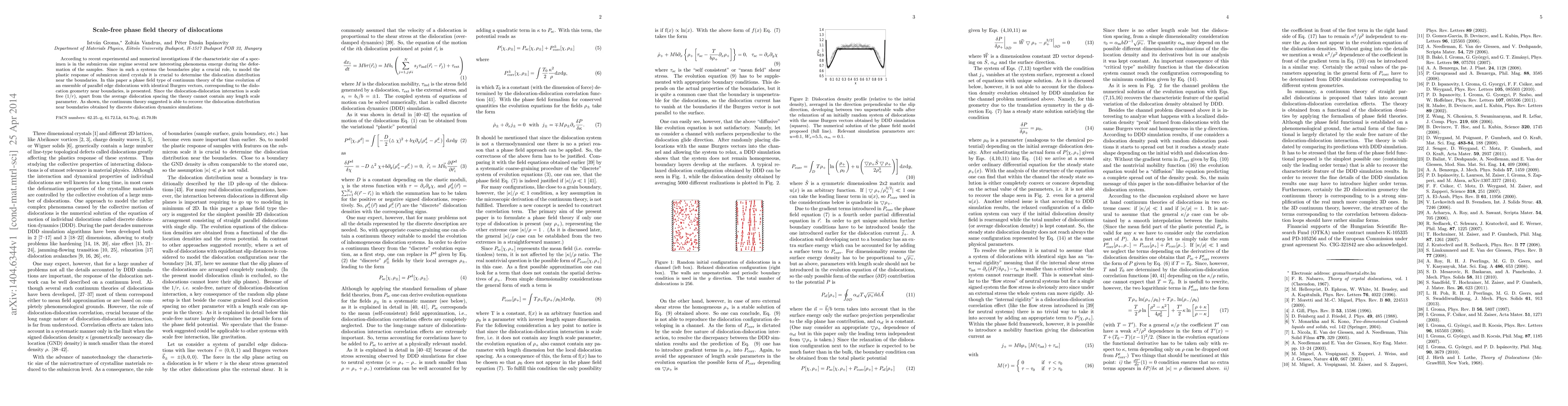 According to recent experimental and numerical investigations if the characteristic size of a specimen is in the submicron size regime several new interesting phenomena emerge during the deformation of the samples. Since in such a systems the boundaries play a crucial role, to model the plastic response of submicron sized crystals it is crucial to determine the dislocation distribution near the boundaries. In this paper a phase field type of continuum theory of the time evolution of an ensemble of parallel edge dislocations with identical Burgers vectors, corresponding to the dislocation geometry near boundaries, is presented. Since the dislocation-dislocation interaction is scale free ($1/r$), apart from the average dislocation spacing the theory cannot contain any length scale parameter. As shown, the continuum theory suggested is able to recover the dislocation distribution near boundaries obtained by discrete dislocation dynamics simulations.
