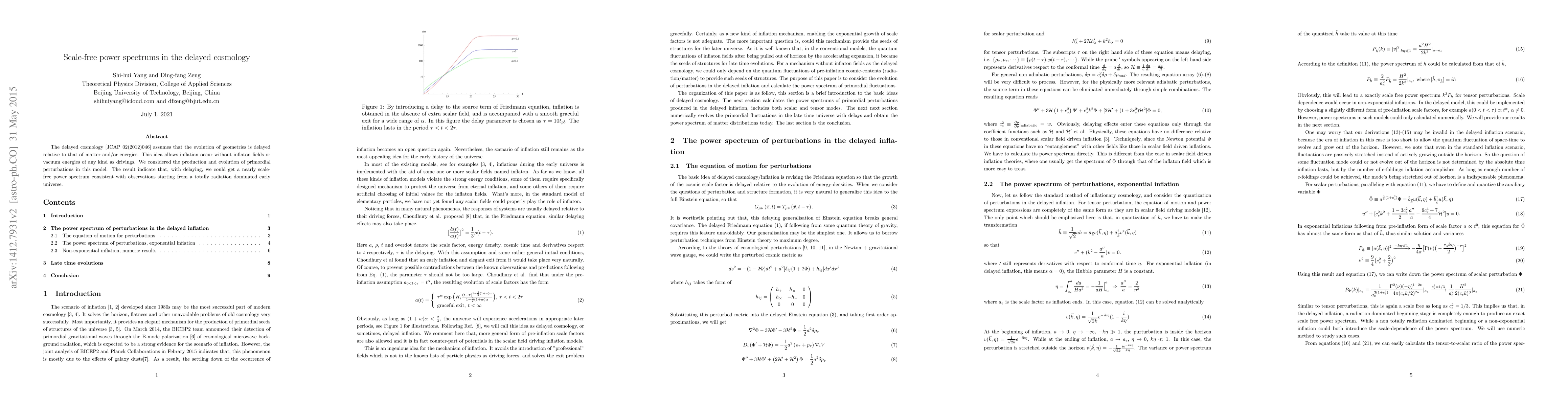 The delayed cosmology [JCAP 02(2012)046] assumes that the evolution of geometries is delayed relative to that of matter and/or energies. This idea allows inflation occur without inflaton fields or vacuum energies of any kind as drivings. We considered the production and evolution of primordial perturbations in this model. The results indicate that, with delaying, we could get a nearly scale-free power spectrum of perturbations starting from a radiation dominated early universe.