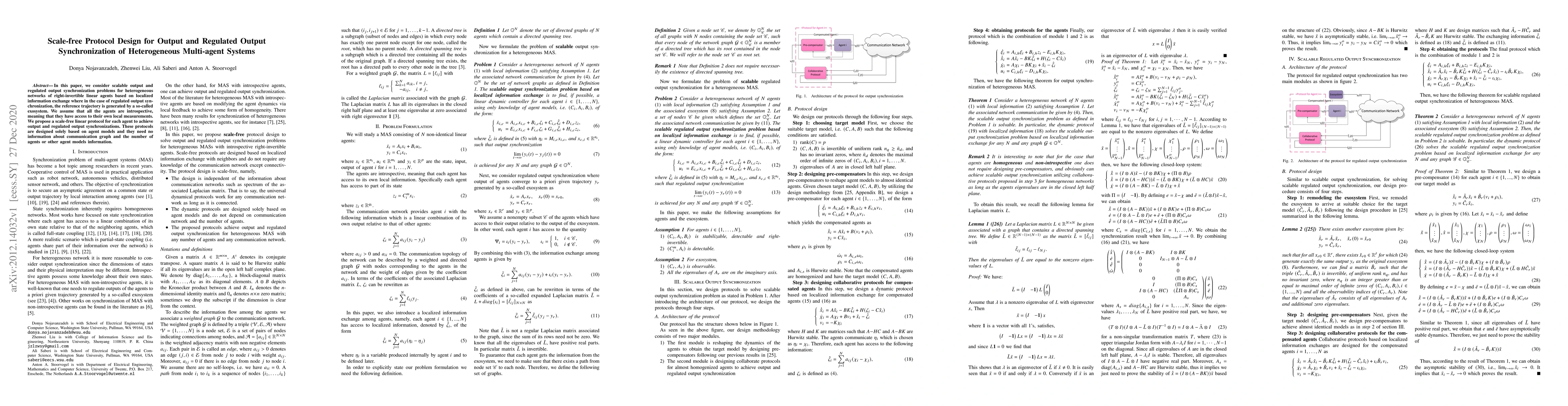 This paper proposes scale-free linear protocols for achieving output and regulated output synchronization in heterogeneous multi-agent systems, relying solely on local agent measurements without requiring knowledge of the communication graph or agent count. The protocols are designed based on individual agent models and an exosystem for regulated output synchronization.