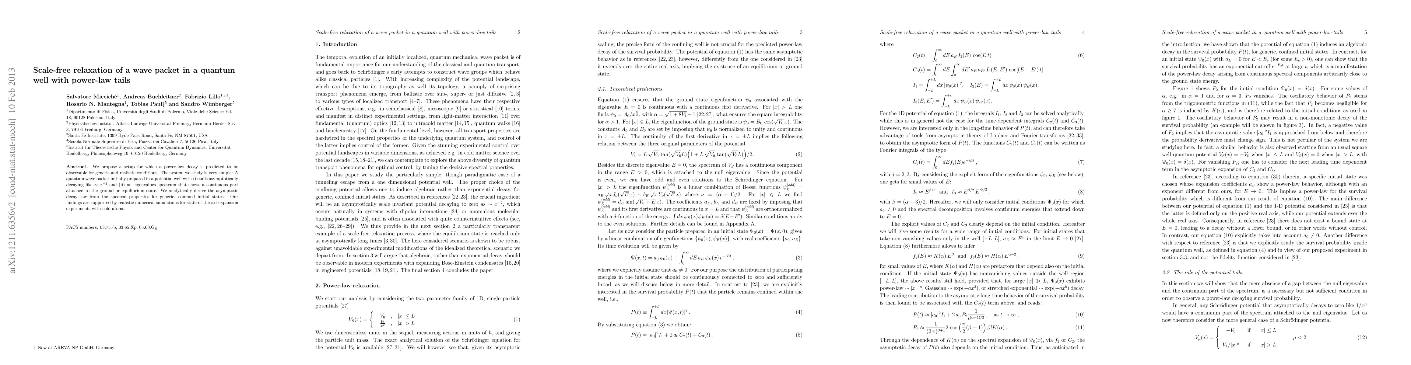 This paper proposes a simple quantum well system with power-law decaying tails and a continuous spectrum, analytically deriving the scale-free relaxation decay law from its spectral properties, and validating the findings with numerical simulations of cold atom experiments.