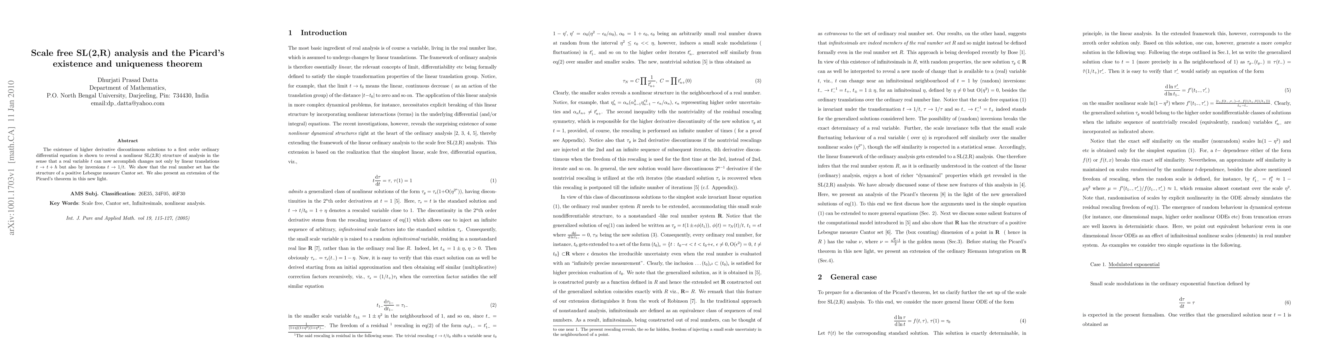 The existence of higher derivative discontinuous solutions to a first order ordinary differential equation is shown to reveal a nonlinear SL(2,R) structure of analysis in the sense that a real variable $t$ can now accomplish changes not only by linear translations $t \to t + h$ but also by inversions $t \to 1/t$. We show that the real number set has the structure of a positive Lebesgue measure Cantor set. We also present an extension of the Picard's theorem in this new light.