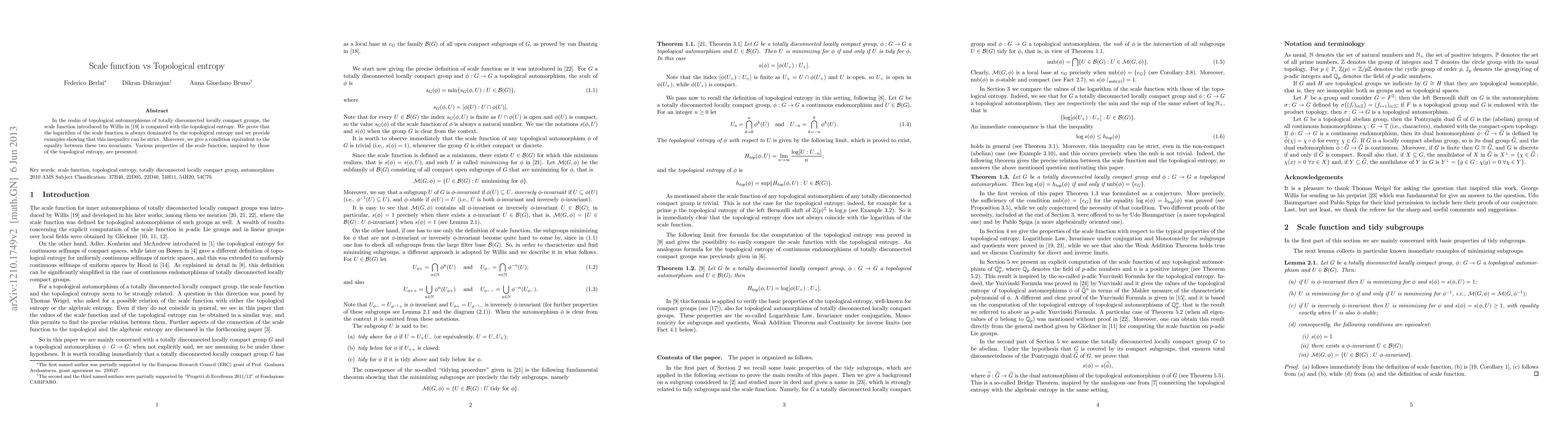 This paper compares the scale function to topological entropy in totally disconnected locally compact groups, showing that the logarithm of the scale function is always dominated by the topological entropy, with examples where equality can occur.