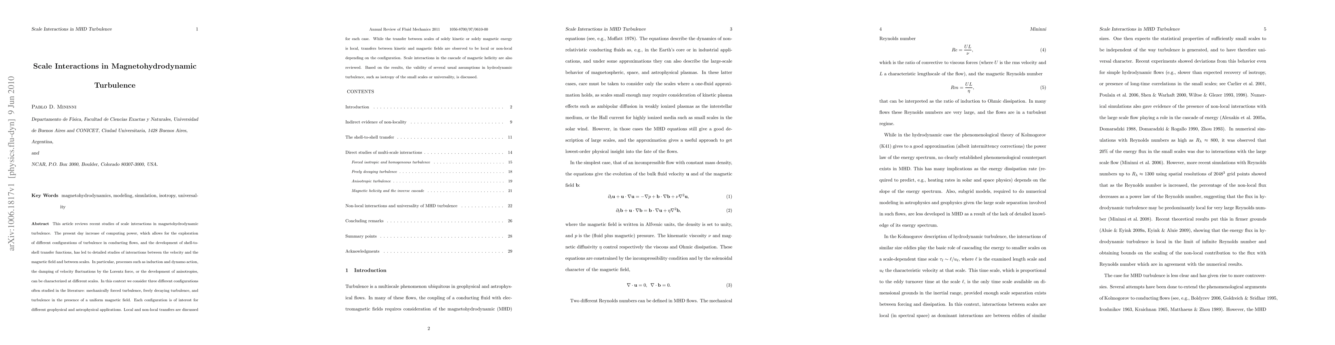 This paper reviews recent studies on scale interactions in magnetohydrodynamic turbulence, examining the effects of increased computational power on exploring conducting flow turbulence. It discusses local and non-local energy transfers between velocity and magnetic fields in mechanically forced, freely decaying, and magnetized turbulence configurations, questioning traditional assumptions of isotropy and universality in hydrodynamic turbulence.