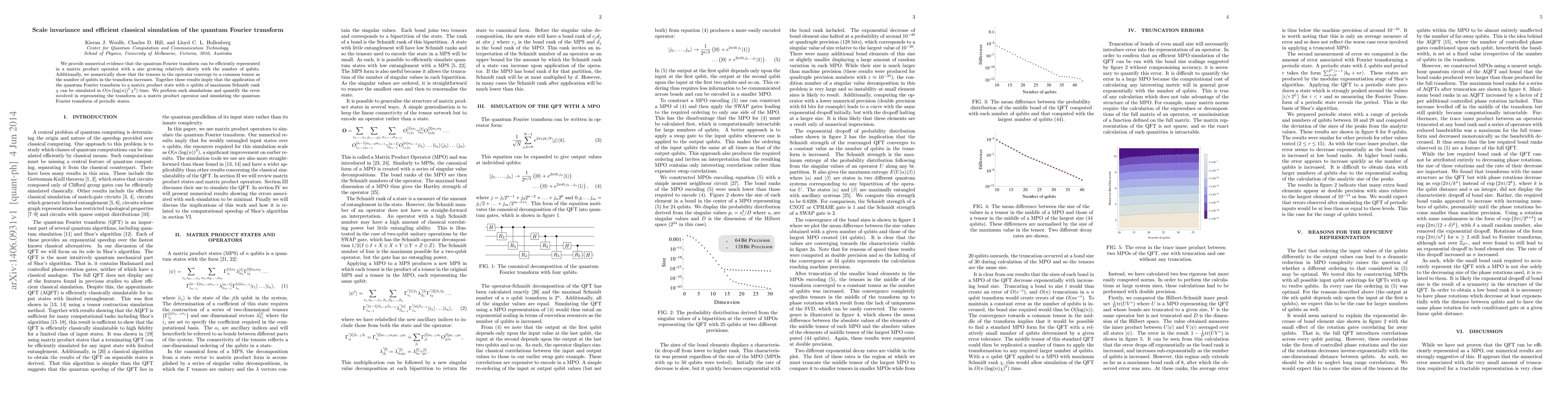 This paper demonstrates that the quantum Fourier transform can be efficiently simulated using matrix product operators with a size that grows slowly with the number of qubits. The study shows that these tensors converge as the number of qubits increases, allowing for $O(n (\log(n))^2 \chi^2)$ time simulations, where $\chi$ is the maximum Schmidt rank.