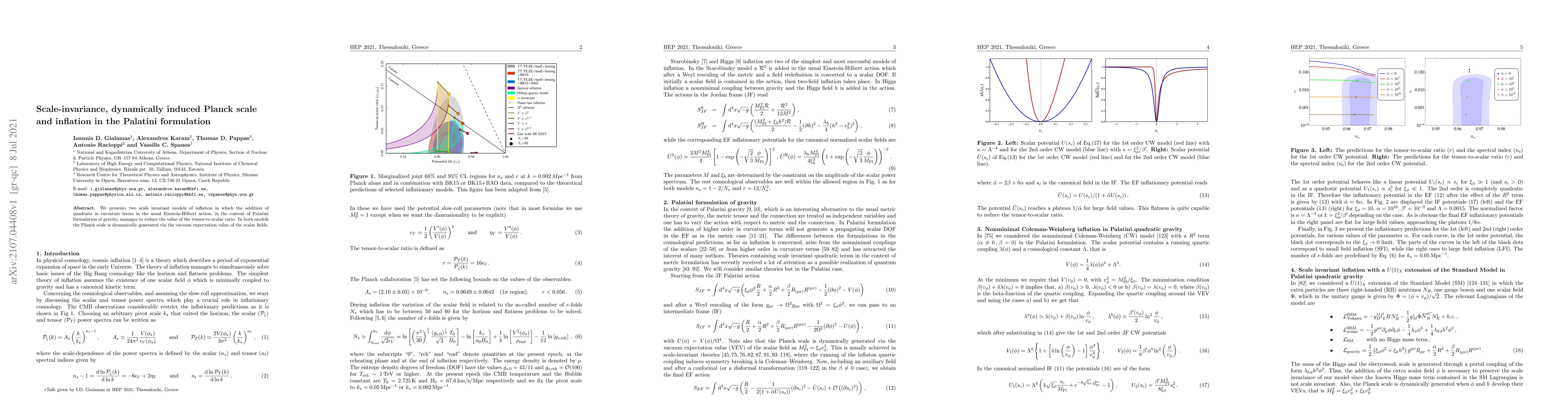 We present two scale invariant models of inflation in which the addition of quadratic in curvature terms in the usual Einstein-Hilbert action, in the context of Palatini formulation of gravity, manages to reduce the value of the tensor-to-scalar ratio. In both models the Planck scale is dynamically generated via the vacuum expectation value of the scalar fields.