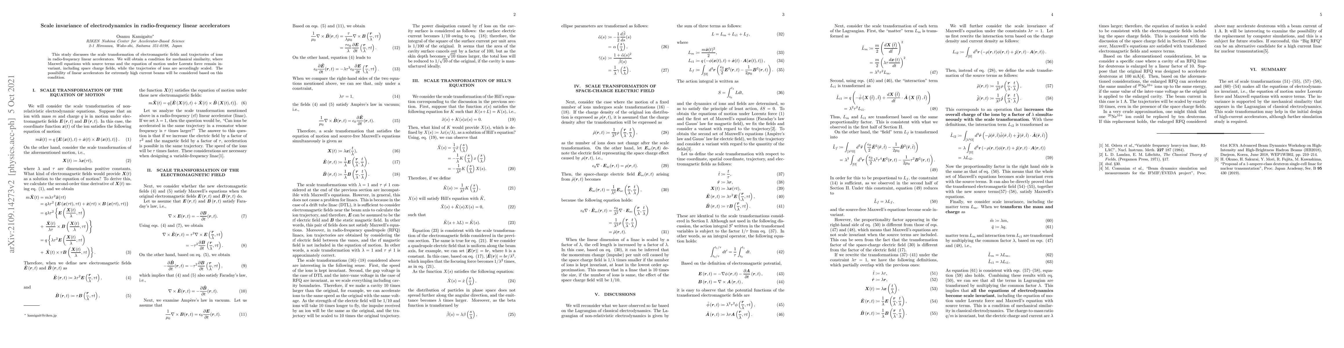 This study discusses the scale transformation of electromagnetic fields and trajectories of ions in radio-frequency linear accelerators. We will obtain a condition for mechanical similarity, where Maxwell equations with source terms and the equation of motion under Lorentz force remain invariant, including space charge fields, while the trajectories of ions are accordingly scaled. The possibility of linear accelerators for extremely high current beams will be considered based on this condition.