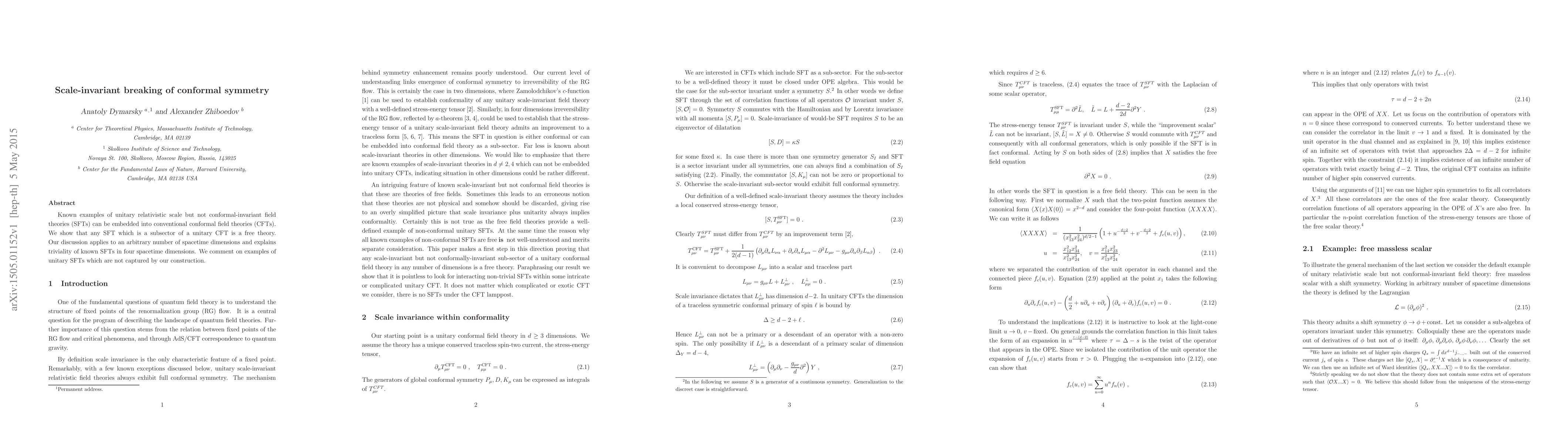 Known examples of unitary relativistic scale but not conformal-invariant field theories (SFTs) can be embedded into conventional conformal field theories (CFTs). We show that any SFT which is a subsector of a unitary CFT is a free theory. Our discussion applies to an arbitrary number of spacetime dimensions and explains triviality of known SFTs in four spacetime dimensions. We comment on examples of unitary SFTs which are not captured by our construction.