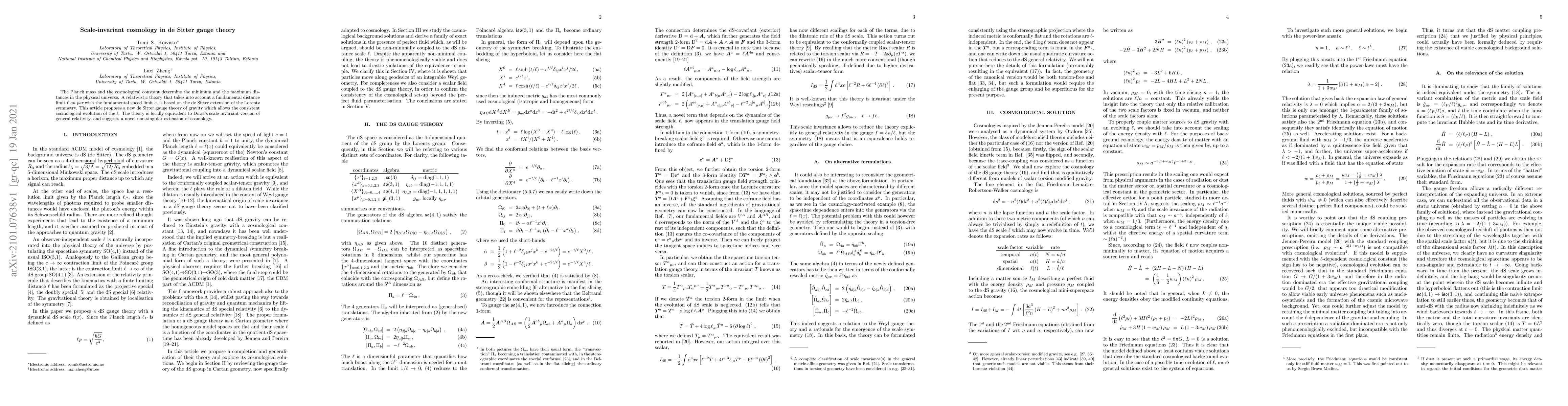 This paper proposes a new de Sitter gauge theory of gravity that incorporates a fundamental distance limit, offering a consistent cosmological evolution and suggesting a novel non-singular extension of cosmology, equivalent locally to Dirac's scale-invariant general relativity.