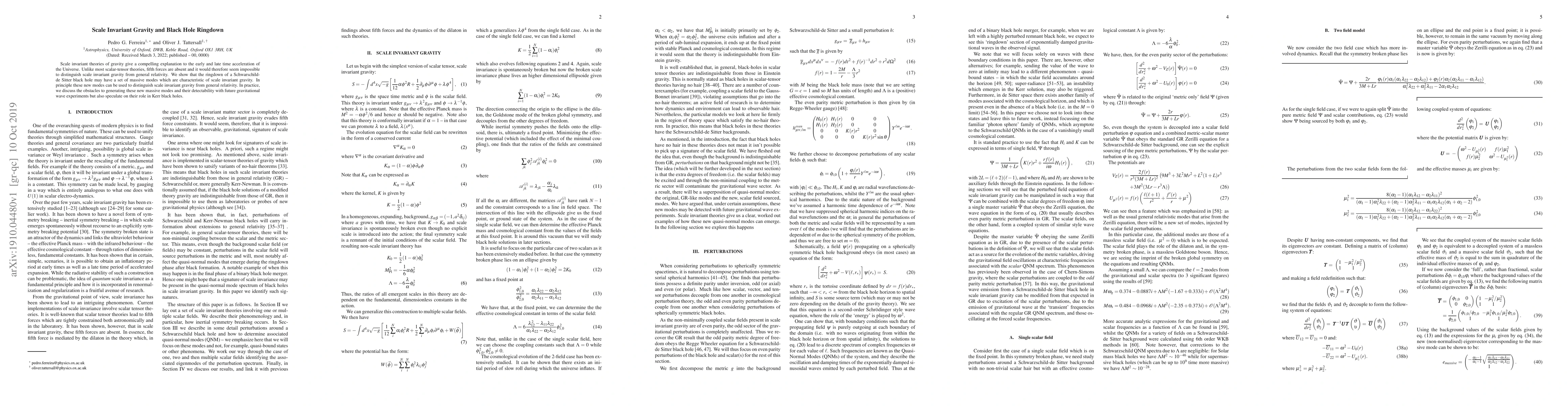 Scale invariant theories of gravity give a compelling explanation to the early and late time acceleration of the Universe. Unlike most scalar-tensor theories, fifth forces are absent and it would therefore seem impossible to distinguish scale invariant gravity from general relativity. We show that the ringdown of a Schwarschild-de Sitter black hole may have a set of massive modes which are characteristic of scale invariant gravity. In principle these new modes can be used to distinguish scale invariant gravity from general relativity. In practice, we discuss the obstacles to generating these new massive modes and their detectability with future gravitational wave experiments but also speculate on their role in Kerr black holes.