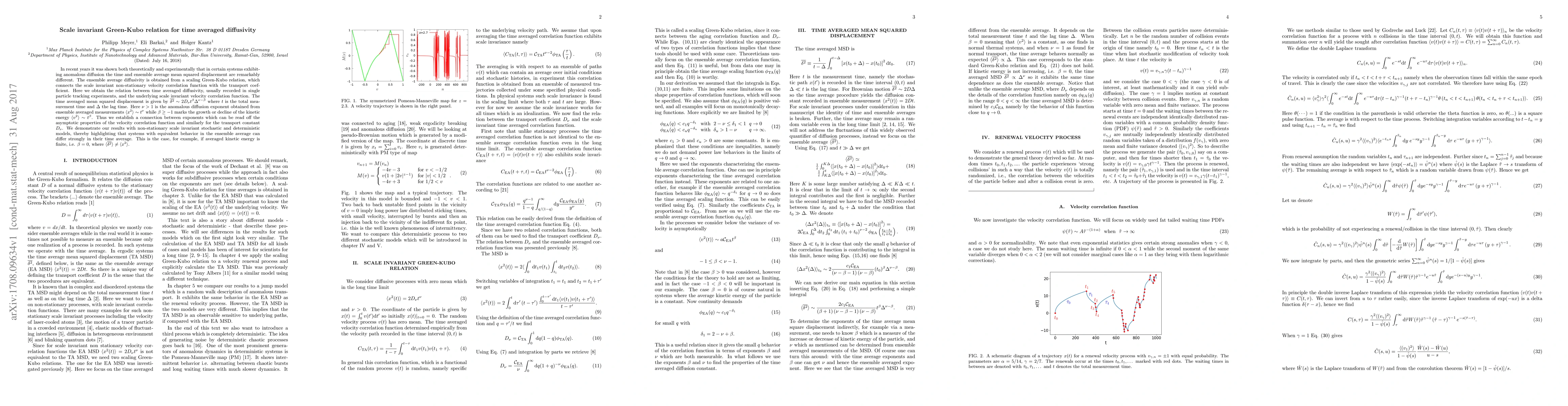 This research derives a Green-Kubo relation linking time averaged diffusivity to scale invariant velocity correlation functions, applicable for systems with anomalous diffusion. It demonstrates discrepancies between ensemble and time averaged diffusivity through stochastic and deterministic models, highlighting that systems with similar ensemble behavior can have distinct time averages, particularly when kinetic energy is finite.