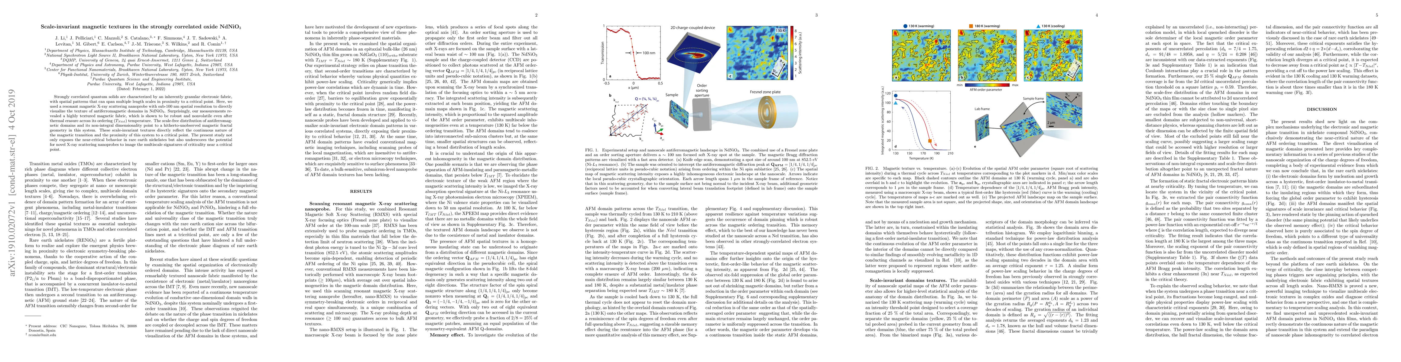 Strongly correlated quantum solids are characterized by an inherently granular electronic fabric, with spatial patterns that can span multiple length scales in proximity to a critical point. Here, we used a resonant magnetic X-ray scattering nanoprobe with sub-100 nm spatial resolution to directly visualize the texture of antiferromagnetic domains in NdNiO$_3$. Surprisingly, our measurements revealed a highly textured magnetic fabric, which is shown to be robust and nonvolatile even after thermal erasure across its ordering ($T_{N\acute{e}el}$) temperature. The scale-free distribution of antiferromagnetic domains and its non-integral dimensionality point to a hitherto-unobserved magnetic fractal geometry in this system. These scale-invariant textures directly reflect the continuous nature of the magnetic transition and the proximity of this system to a critical point. The present study not only exposes the near-critical behavior in rare earth nickelates but also underscores the potential for novel X-ray scattering nanoprobes to image the multiscale signatures of criticality near a critical point.