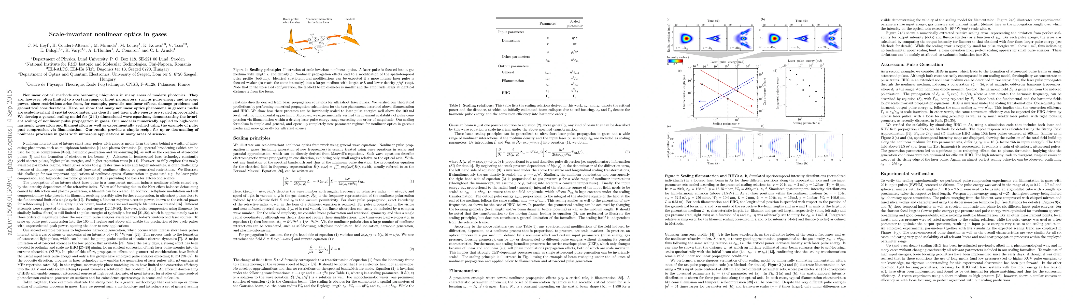 This paper demonstrates that nonlinear optical phenomena in gases exhibit scale-invariant properties when spatial coordinates, gas density, and laser pulse energy are appropriately scaled. The authors develop a general scaling model for wave equations and apply it to high-order harmonic generation and filamentation, providing a practical method for up- or downscaling nonlinear processes in gases.