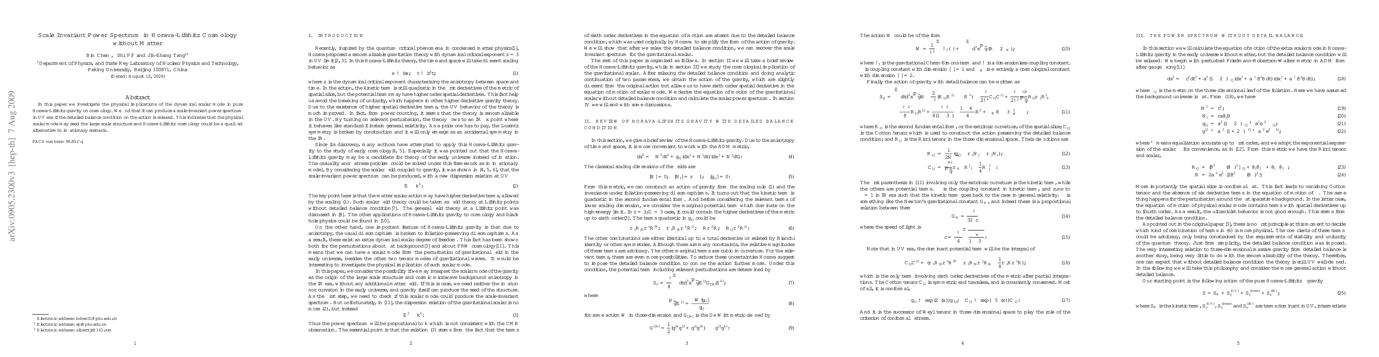 Horava-Lifshitz cosmology may produce a scale-invariant power spectrum without matter, potentially seeding large-scale structure, as a relaxed detailed balance condition allows for dynamic scalar mode growth.