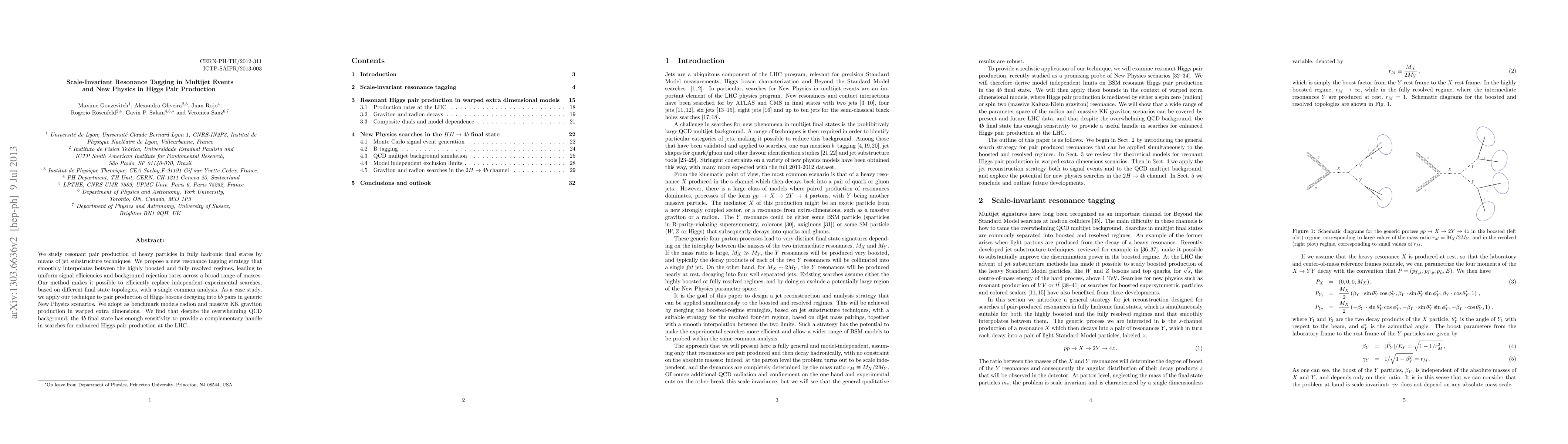 This paper proposes a novel resonance tagging strategy for identifying heavy particle pairs in multijet events, applicable across various mass regimes, and demonstrates its effectiveness in searching for new physics in Higgs pair production, particularly in scenarios involving radion and KK gravitons. The method enhances sensitivity in the $4b$ final state despite significant QCD background.