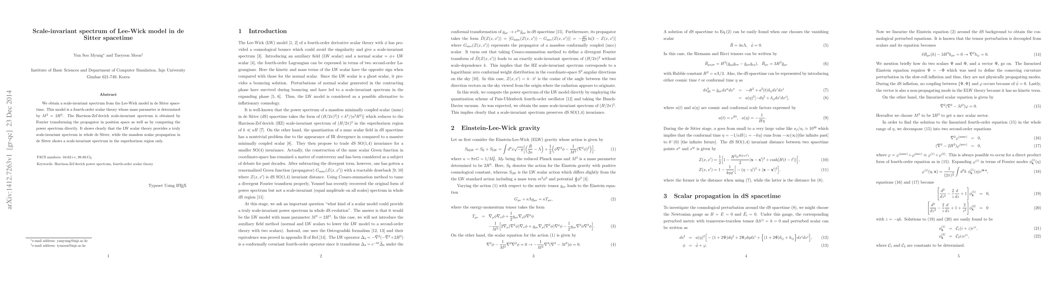 The Lee-Wick model in de Sitter spacetime yields a scale-invariant spectrum, as demonstrated through both Fourier transformation of the propagator and direct power spectrum computation. Unlike the massless scalar, the Lee-Wick model exhibits this invariance throughout the entire de Sitter space.