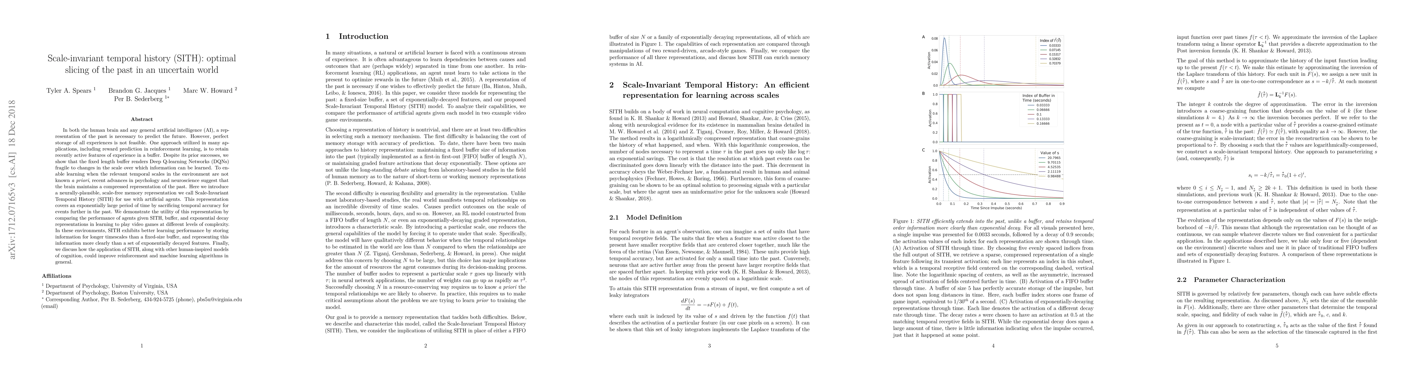 Researchers developed a new memory representation called Scale-Invariant Temporal History (SITH) that allows artificial agents to learn from past experiences without knowing the optimal time scale in advance, improving learning performance over traditional methods.
