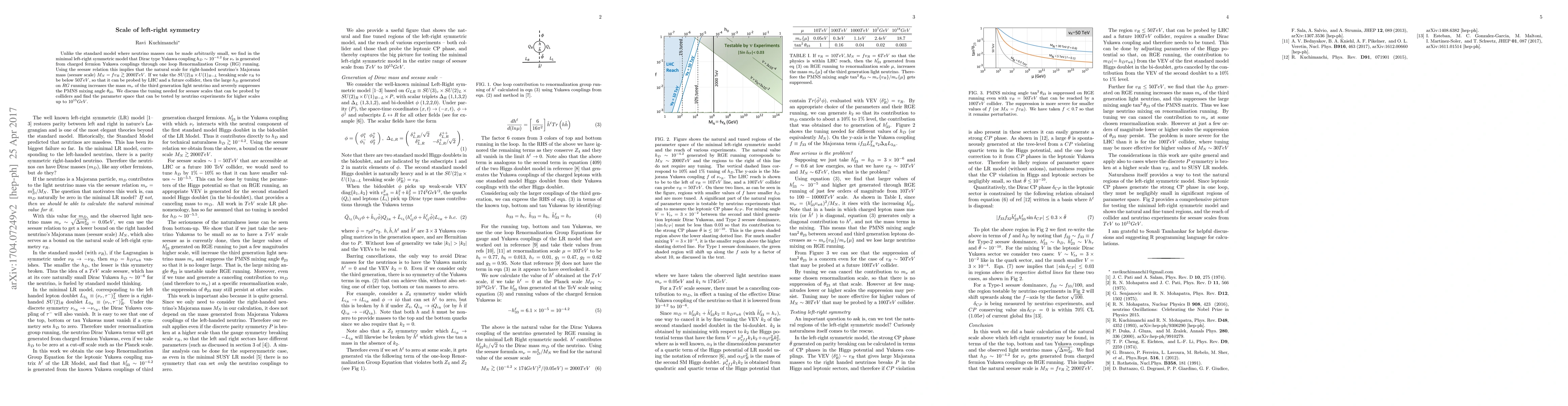 The research paper finds that in a minimal left-right symmetric model, neutrino masses can only be generated through one loop Renormalization Group running, leading to large Yukawa coupling values and implications for collider and neutrino experiments. The study explores tuning requirements and parameter space for testing seesaw scales up to $10^{15} GeV$.