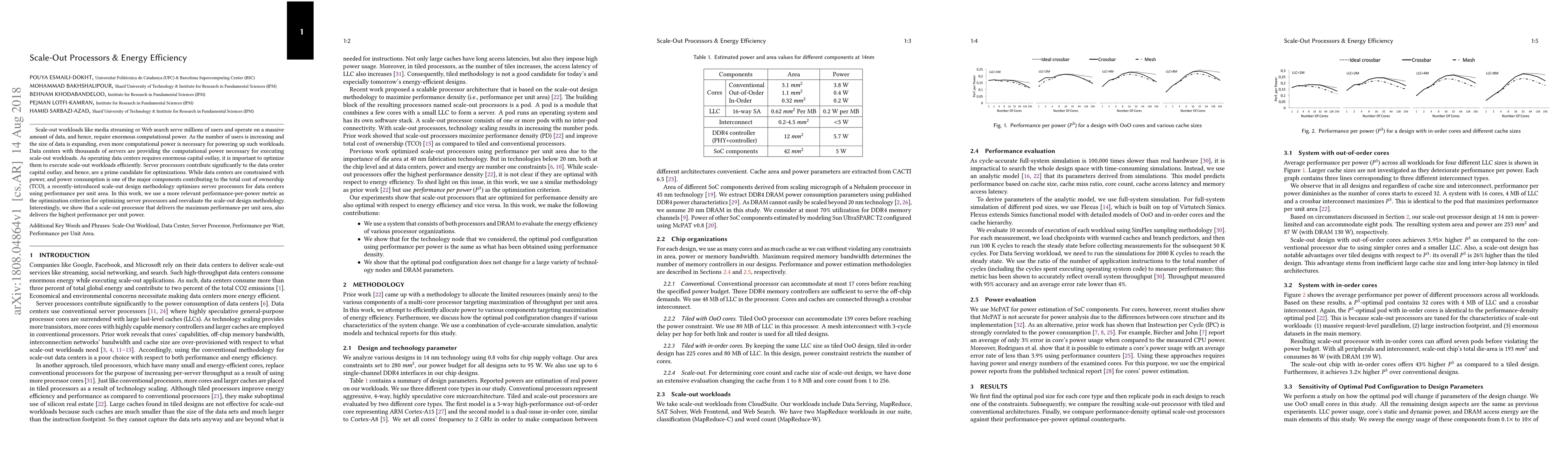 This paper explores the optimization of server processors for scale-out workloads in data centers, focusing on energy efficiency. It finds that maximizing performance per unit area also optimizes performance per unit power, suggesting a new approach to designing energy-efficient scale-out processors.