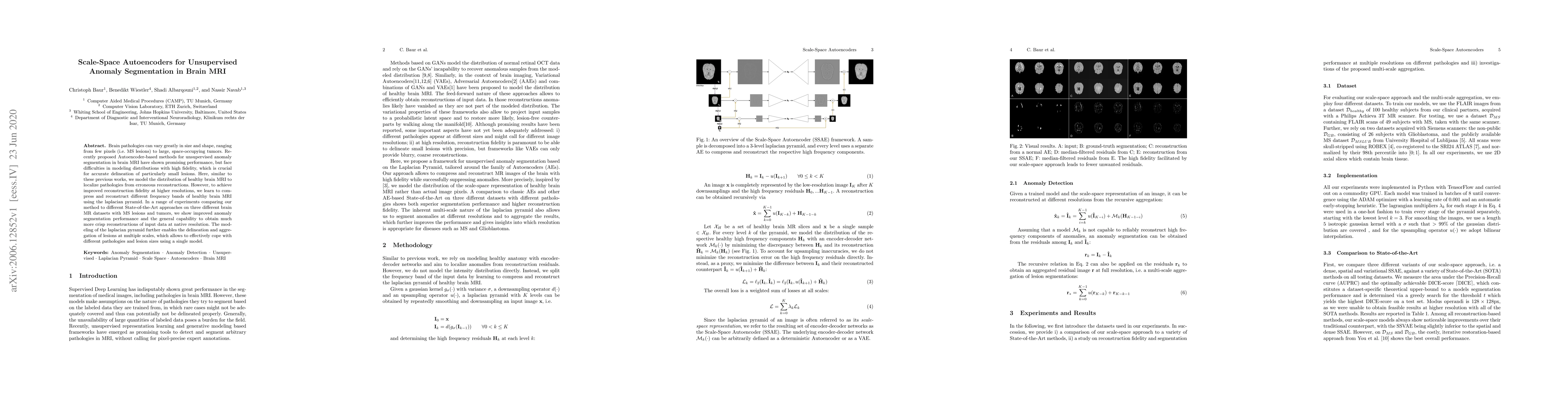 This paper proposes scale-space autoencoders using a laplacian pyramid to improve unsupervised anomaly segmentation in brain MRI, achieving better reconstruction fidelity and crisper delineations of both small and large pathologies compared to state-of-the-art methods. The approach effectively models different frequency bands to handle various lesion sizes within a single model.