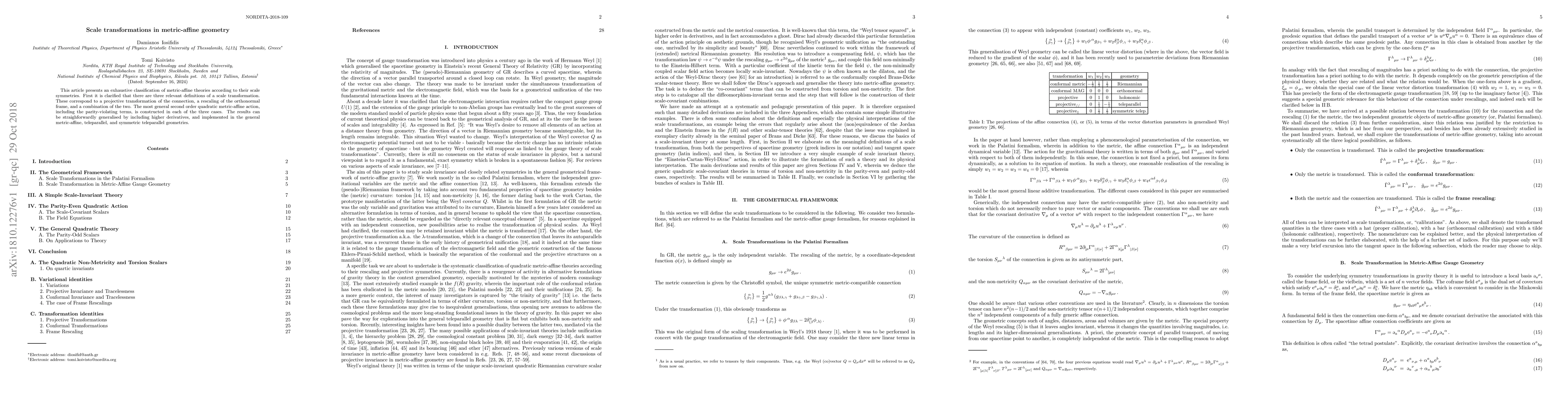 This article presents an exhaustive classification of metric-affine theories according to their scale symmetries. First it is clarified that there are three relevant definitions of a scale transformation. These correspond to a projective transformation of the connection, a rescaling of the orthonormal frame, and a combination of the two. The most general second order quadratic metric-affine action, including the parity-violating terms, is constructed in each of the three cases. The results can be straightforwardly generalised by including higher derivatives, and implemented in the general metric-affine, teleparallel, and symmetric teleparallel geometries.