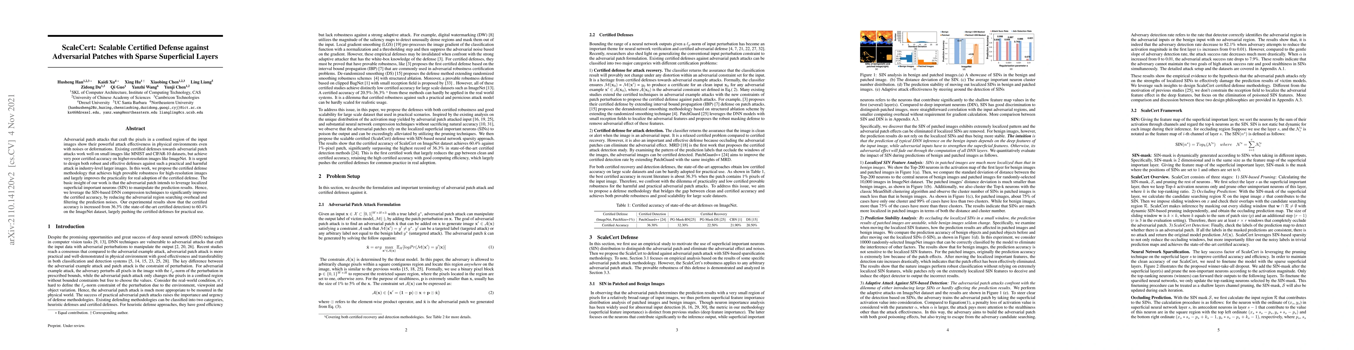ScaleCert proposes a scalable certified defense against adversarial patch attacks by utilizing sparse superficial important neurons (SIN) to enhance certified accuracy on high-resolution images like ImageNet. The method significantly improves practical certified defense by increasing certified accuracy from 36.3% to 60.4%.