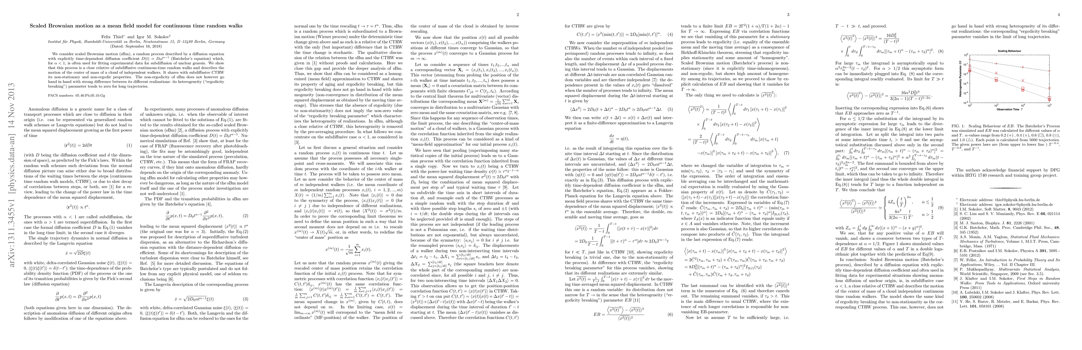 Summary: Scaled Brownian motion, characterized by a time-dependent diffusion coefficient, is shown to closely relate to subdiffusive continuous-time random walks, describing the center of mass motion of independent walkers. Despite its non-stationary and non-ergodic properties, the heterogeneity parameter of scaled Brownian motion tends to zero for long trajectories.