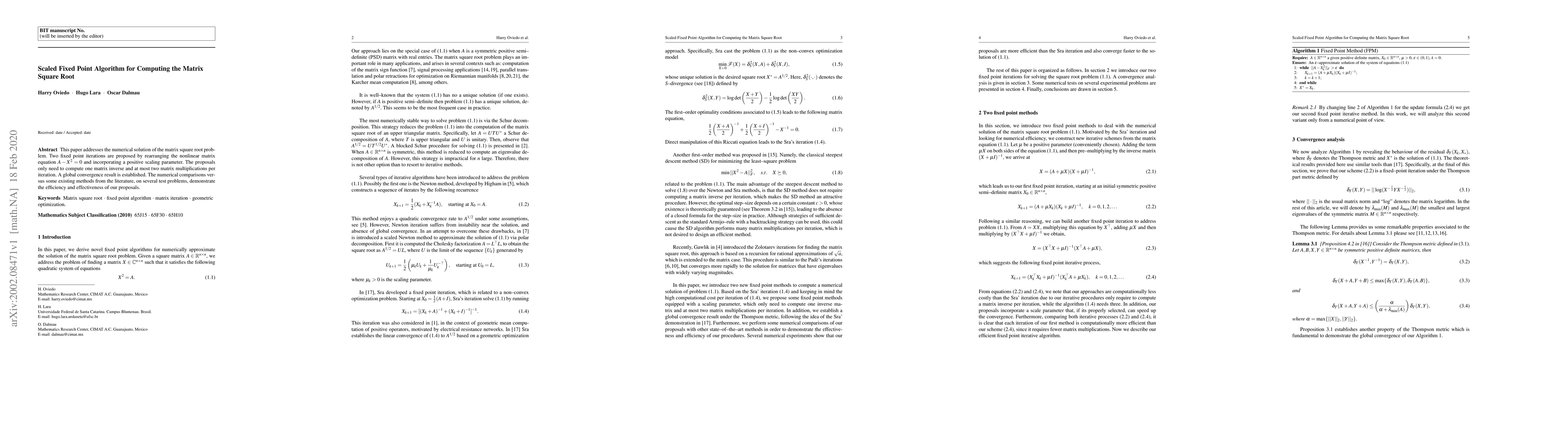 The scaled fixed point algorithm for computing the matrix square root, which requires minimal matrix inversions and multiplications per iteration.