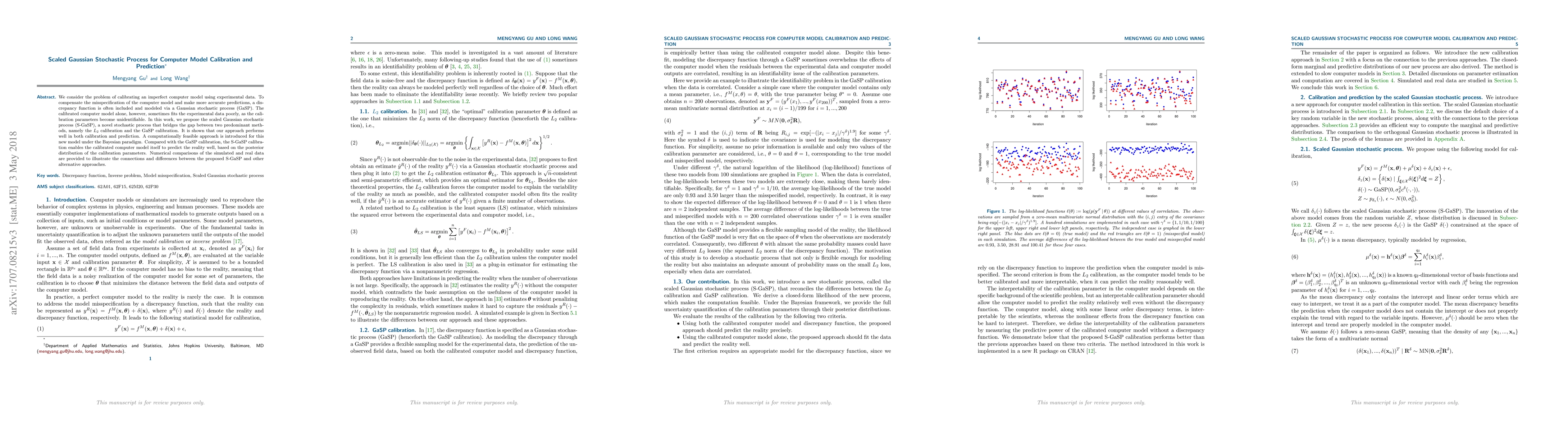 This paper proposes a scaled Gaussian stochastic process (S-GaSP) for calibrating imperfect computer models using experimental data, aiming to bridge $L_2$ calibration and GaSP calibration methods. The S-GaSP improves both calibration and prediction accuracy, offering a computationally feasible Bayesian approach.
