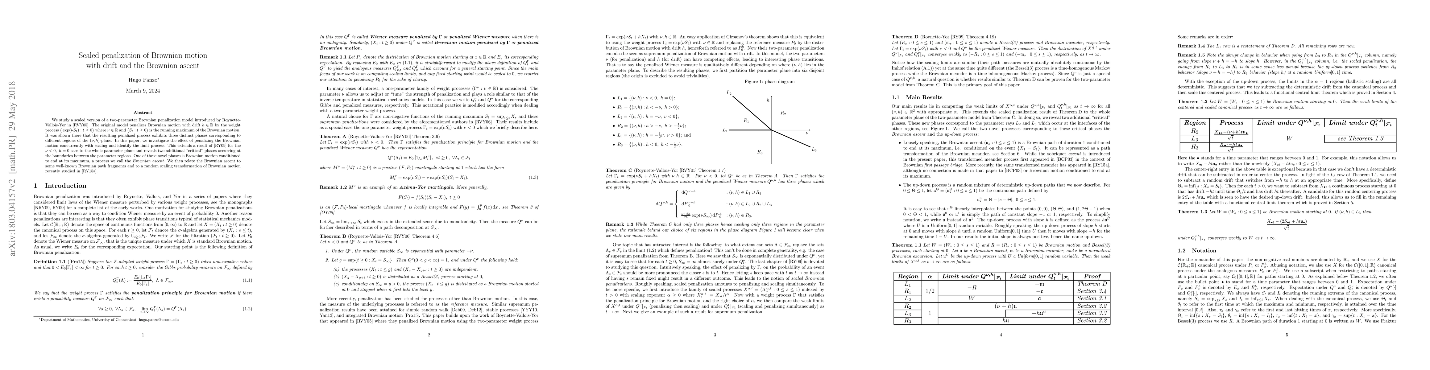 This paper studies a scaled version of a two-parameter Brownian penalization model, identifying new limit processes and revealing two additional "critical" phases, including the Brownian ascent, conditioned to end at its maximum. This extends previous results and connects the Brownian ascent to known Brownian path fragments and a random scaling transformation.
