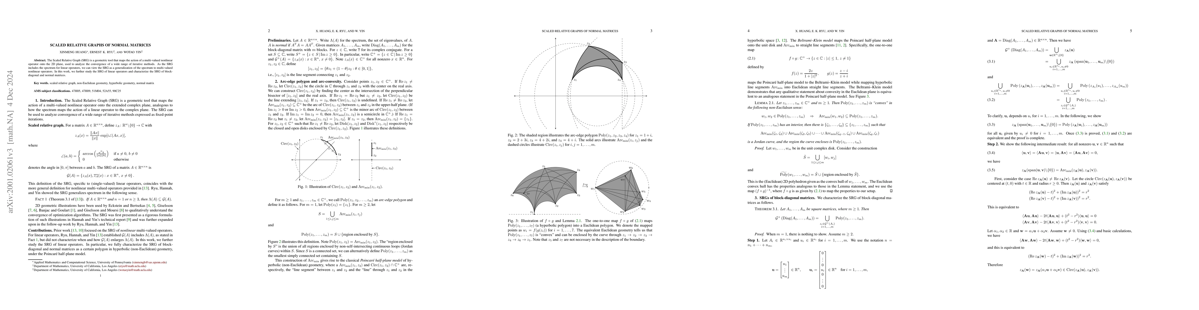 The Scaled Relative Graph (SRG) by Ryu, Hannah, and Yin (arXiv:1902.09788, 2019) is a geometric tool that maps the action of a multi-valued nonlinear operator onto the 2D plane, used to analyze the convergence of a wide range of iterative methods. As the SRG includes the spectrum for linear operators, we can view the SRG as a generalization of the spectrum to multi-valued nonlinear operators. In this work, we further study the SRG of linear operators and characterize the SRG of block-diagonal and normal matrices.