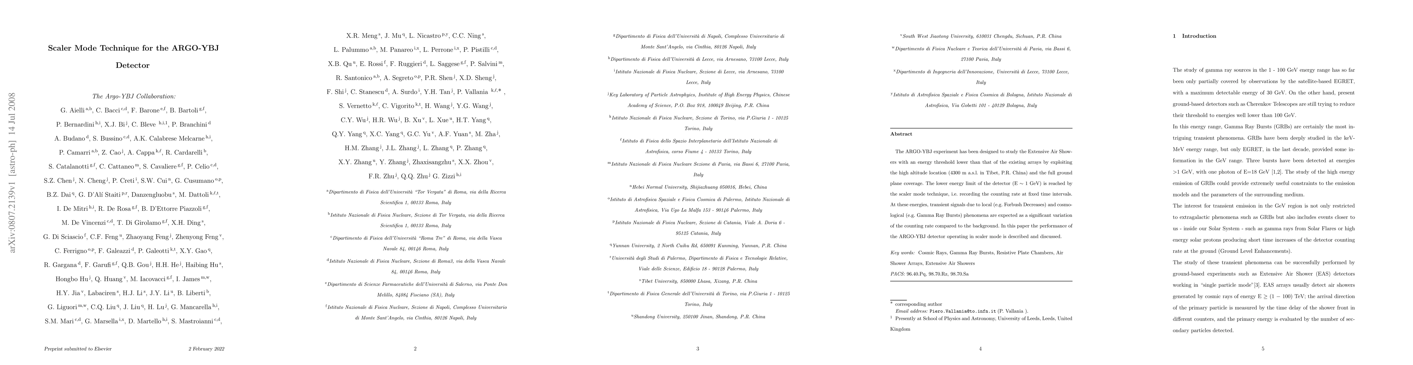 The ARGO-YBJ detector achieved an energy threshold of 1 GeV using a scaler mode technique, allowing it to capture transient signals from local and cosmological phenomena with unprecedented sensitivity.