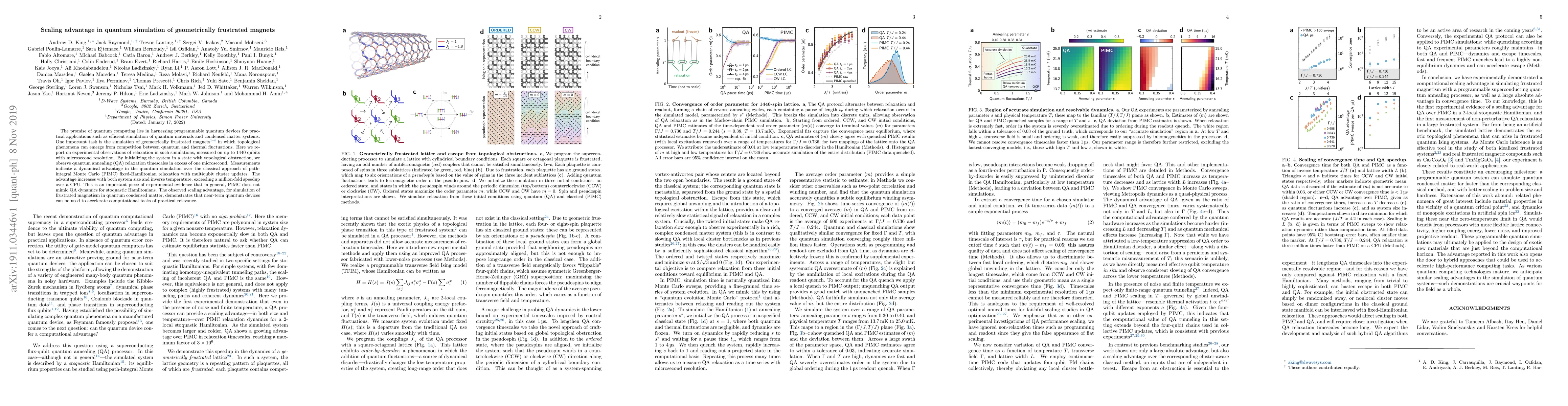 This paper reports on the experimental observation of quantum annealing relaxation in simulations of geometrically frustrated magnets, showing a million-fold speedup over classical path-integral Monte Carlo methods. The study highlights the scaling advantage of quantum devices in simulating quantum materials, indicating their potential for practical computational tasks.
