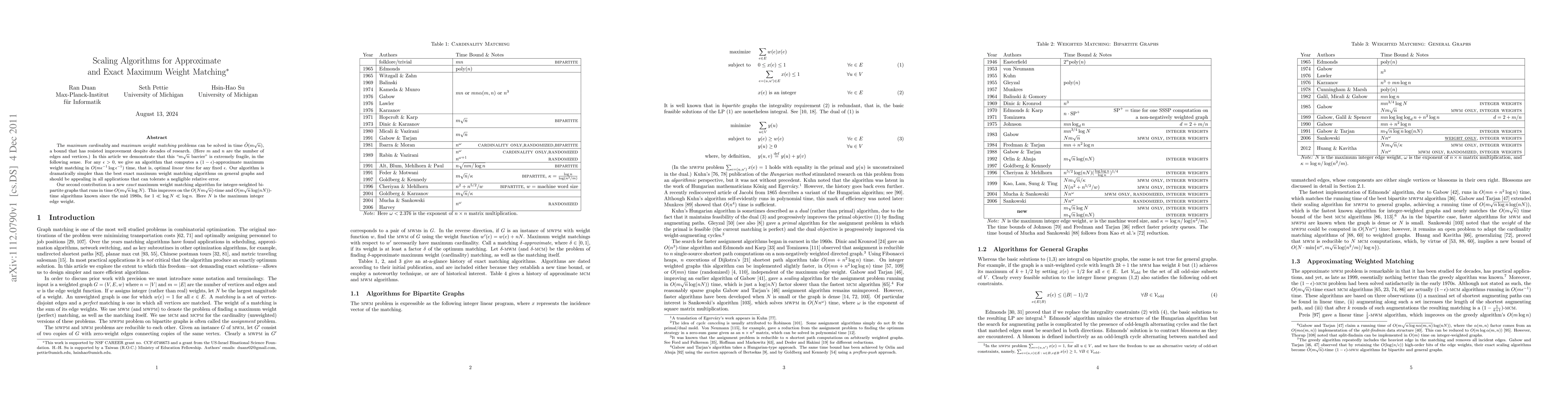 The paper presents an algorithm for scaling maximum weight matching problems, improving upon previous methods by introducing a new approach to handle approximate and exact solutions efficiently.