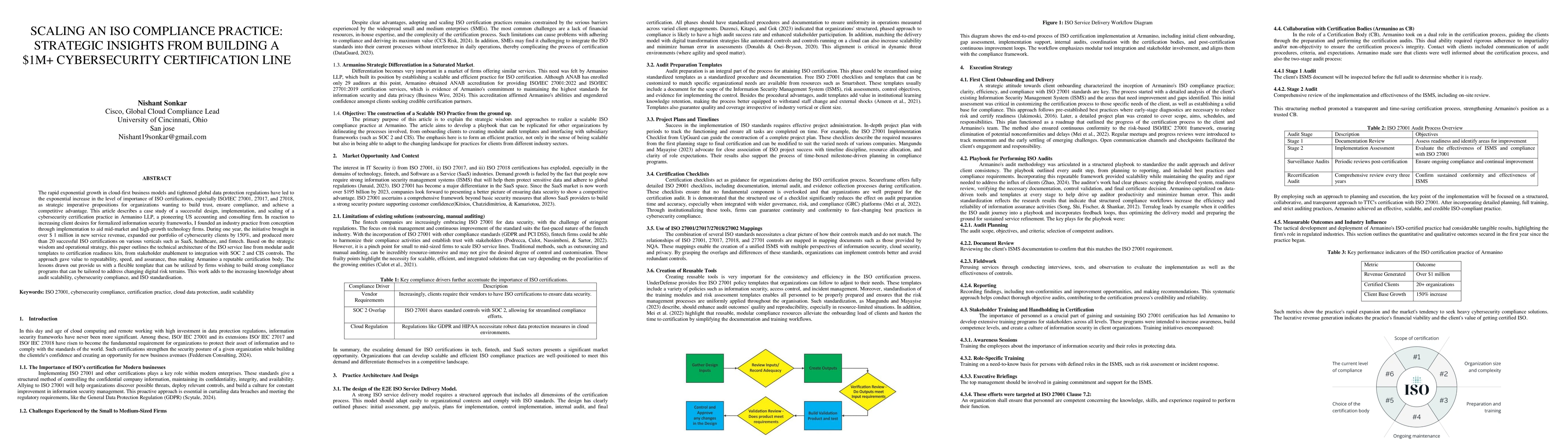 This work provides strategic insights and operational strategies for scaling an ISO compliance practice, offering a practical, adaptable model for organizations seeking to establish or enhance their cybersecurity certification capabilities.