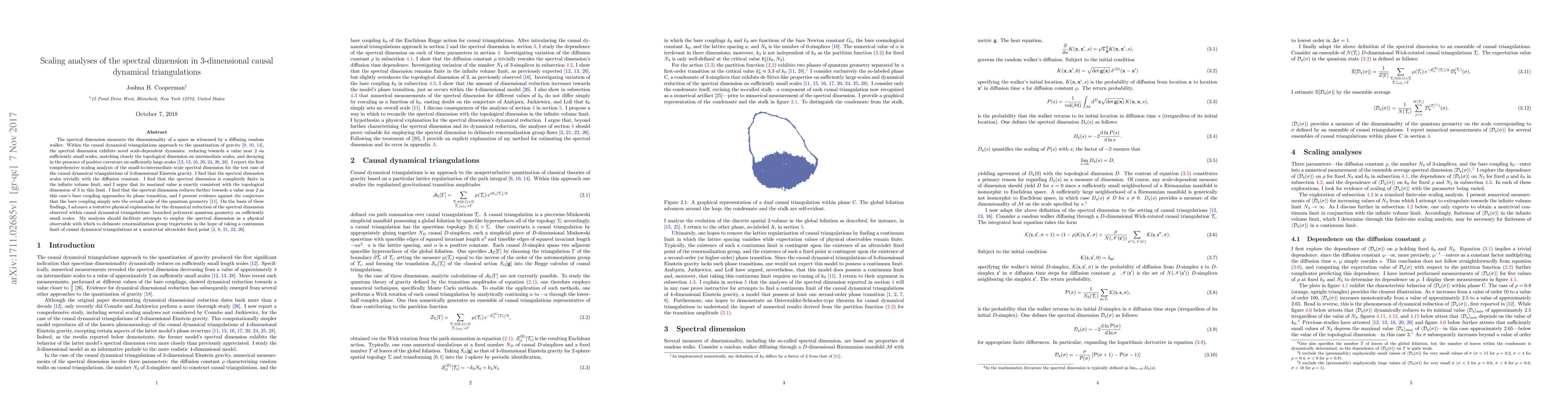 The spectral dimension measures the dimensionality of a space as witnessed by a diffusing random walker. Within the causal dynamical triangulations approach to the quantization of gravity, the spectral dimension exhibits novel scale-dependent dynamics: reducing towards a value near 2 on sufficiently small scales, matching closely the topological dimension on intermediate scales, and decaying in the presence of positive curvature on sufficiently large scales. I report the first comprehensive scaling analysis of the small-to-intermediate scale spectral dimension for the test case of the causal dynamical triangulations of 3-dimensional Einstein gravity. I find that the spectral dimension scales trivially with the diffusion constant. I find that the spectral dimension is completely finite in the infinite volume limit, and I argue that its maximal value is exactly consistent with the topological dimension of 3 in this limit. I find that the spectral dimension reduces further towards a value near 2 as this case's bare coupling approaches its phase transition, and I present evidence against the conjecture that the bare coupling simply sets the overall scale of the quantum geometry. On the basis of these findings, I advance a tentative physical explanation for the dynamical reduction of the spectral dimension observed within causal dynamical triangulations: branched polymeric quantum geometry on sufficiently small scales. My analyses should facilitate attempts to employ the spectral dimension as a physical observable with which to delineate renormalization group trajectories in the hope of taking a continuum limit of causal dynamical triangulations at a nontrivial ultraviolet fixed point.
