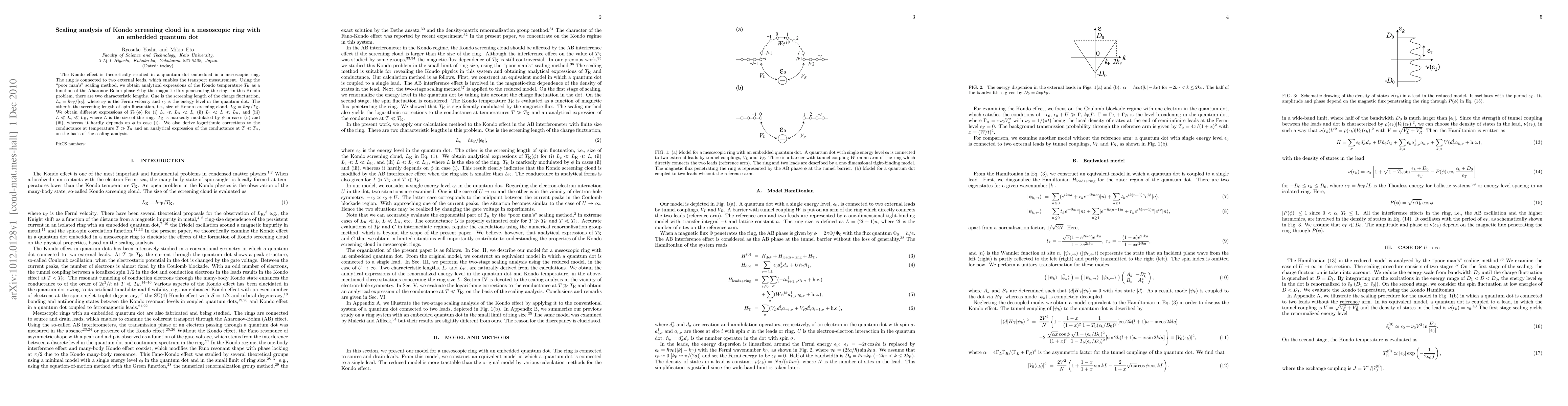 The Kondo effect is theoretically studied in a quantum dot embedded in a mesoscopic ring. The ring is connected to two external leads, which enables the transport measurement. Using the "poor man's" scaling method, we obtain analytical expressions of the Kondo temperature T_K as a function of the Aharonov-Bohm phase \phi by the magnetic flux penetrating the ring. In this Kondo problem, there are two characteristic lengths. One is the screening length of the charge fluctuation, L_c=\hbar v_F/ |\epsilon_0|, where v_F is the Fermi velocity and \epsilon_0 is the energy level in the quantum dot. The other is the screening length of spin fluctuation, i.e., size of Kondo screening cloud, L_K=\hbar v_F/ T_K. We obtain different expressions of T_K(\phi) for (i) L_c \ll L_K \ll L, (ii) L_c \ll L \ll L_K, and (iii) L \ll L_c \ll L_K, where L is the size of the ring. T_K is markedly modulated by \phi in cases (ii) and (iii), whereas it hardly depends on \phi in case (i). We also derive logarithmic corrections to the conductance at temperature T\gg T_K and an analytical expression of the conductance at T\ll T_K, on the basis of the scaling analysis.